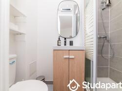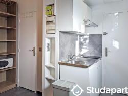 Petit studio au sein d'un immeuble calme sur cour. Situé au RDC avec une vue sur le jardin. Entièrement meublé et équipé. Lit double, kitchenette, douche, wc. Internet inclus dans les charges. TV.