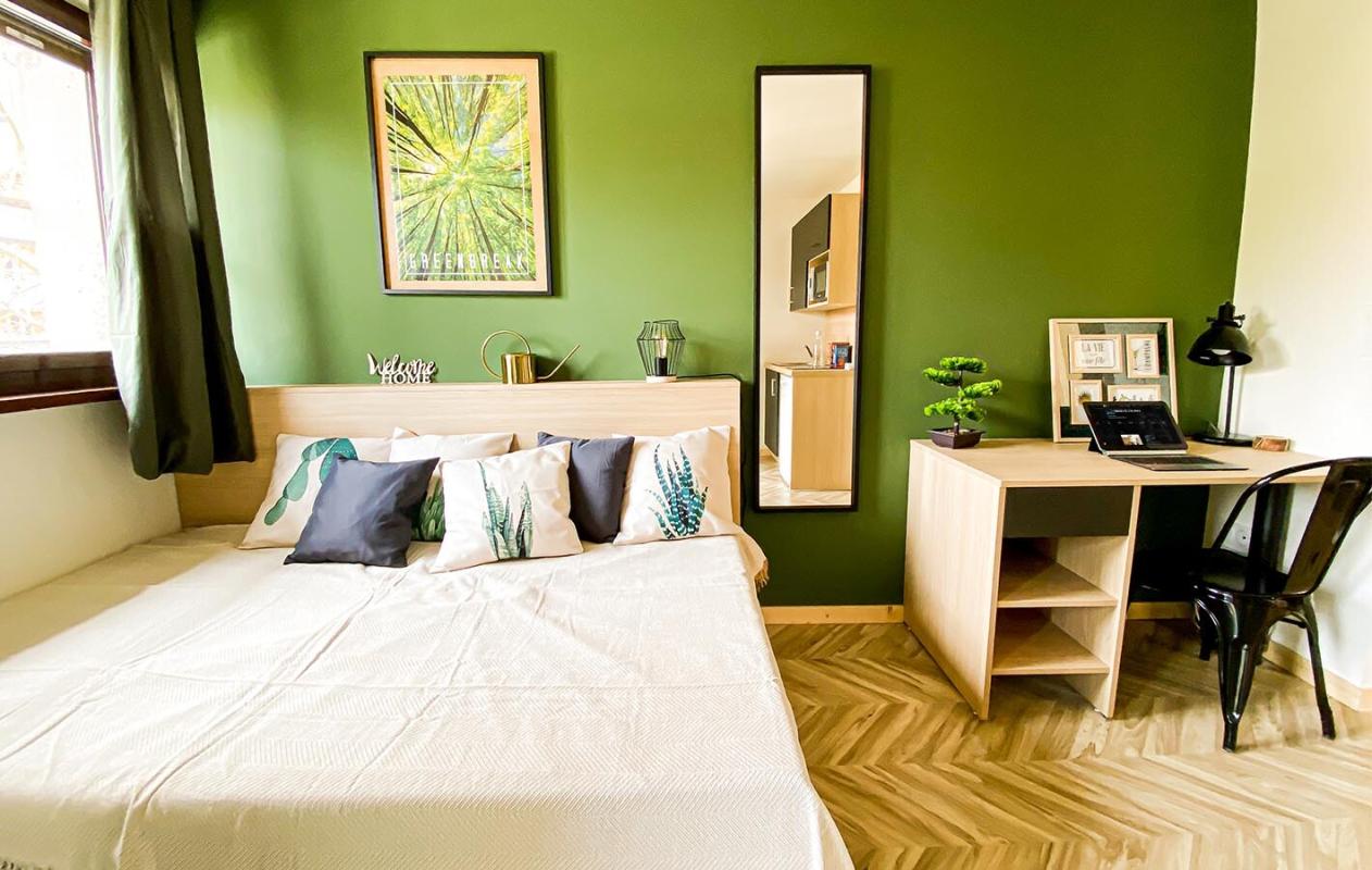 GreenBreak propose 99 appartements, du studio cocooning au T1. Chaque logement est loué entièrement meublé, avec une cuisine équipée (frigo, plaque vitrocéramique, micro-ondes, hotte et rangements) et un coin salon, un coin nuit, et une salle de bain privative. Les appartements sont tous lumineux, modernes et décorés avec soin. Chez UXCO , nous plaçons l'expérience client au c?ur de nos préoccupations. Dans cet objectif, tu pourras profiter de plus de 100 m 2 d'espaces communs comprenant : une zone chill avec un canap', une TV, et n jardin partagé, une zone de co-working, une grande cuisine entièrement équipée et une salle de fitness pour les plus sportifs. Tout cela dans une décoration naturelle qui invite à la détente, et un mobilier design et pratique pour faciliter les rencontres et les échanges.