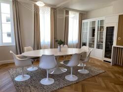Appartement de standing en hyper-centre d'Agen, d'une superficie totale de 185 m², alliant élégance et modernité. Ce logement, une perle rare exclusivement disponible chez LEDIL, comprend une spacieuse cuisine avec salle à manger de 45 m², un séjour cathédrale lumineux de 35 m², trois chambres, un bureau donnant sur une coursive, une salle de bain, une salle d'eau, ainsi qu'une buanderie fonctionnelle. L'appartement a récemment bénéficié d'une rénovation complète, avec l'installation d'une climatisation réversible neuve. L'intérieur a été sublimé par des aménagements de qualité, notamment la cuisine, le meuble de la cave à vin, le meuble TV, le dressing et le parquet, tous conçus par DABOS l'Atelier, assurant une finition haut de gamme. Cette offre inclut également la possibilité d'acquérir l'appartement meublé, une solution idéale pour un emménagement immédiat. Situé en plein c?ur de la ville, cet appartement offre une vue dégagée sur les coteaux de l'Hermitage, à proximité de toutes les commodités. Pour découvrir ce bien d'exception et organiser une visite, contactez Laurent Baron au 06 43 21 40 67