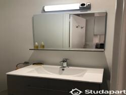 Le studio est équipé d'une salle de bains comprenant douche, WC et lavabo. Il y a un coin cuisine avec espace de rangement, frigidaire, plaque chauffante et four à micro-onde. Il y a enfin une machine à laver le linge.