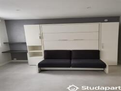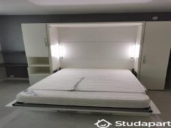 lit 140 incorporé dans un meuble qui une fois plié, sert de canapé.