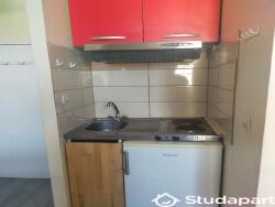 Lit 1 place en mezzanine, Canapé, armoire, bureau, kitchenette équipée, salle d'eau avec WC, interphone.