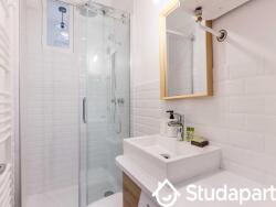 - Une salle d'eau composée d'une douche, lavabo, WC et porte serviettes