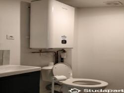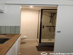 La salle d'eau, neuve & moderne, est composée d'une cabine de douche, WC, un meuble vasque, un miroir et un porte serviette.