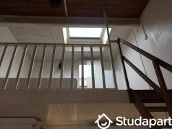 Loue grand studio / duplex meublé, idéal étudiant, entièrement rénové, avec grande mezzanine. Il est situé au premier étage d'un immeuble en pierre.