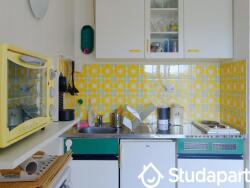 Ce studio peut accueillir 4 personnes, dont 2 dans le canapé convertible lit, et 2 personnes dans les 2 lits superposés.
