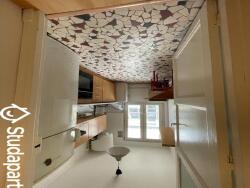 Dans la chambres pièce à vivre doubles vitrages isolants sur menuiserie PVC blanc sur toute la largeur du mur et rideau occultant . Un bureau une banquette lit BZ 140X190 des rangements pour livres. .La fibre est installée. Étagères.