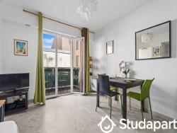 Découvrez ce studio agréable et bien équipé situé au deuxième étage d'un immeuble de Nice. Profitez de la vue sur la cour intérieure depuis le petit balcon équipé d'une table et de deux chaises.