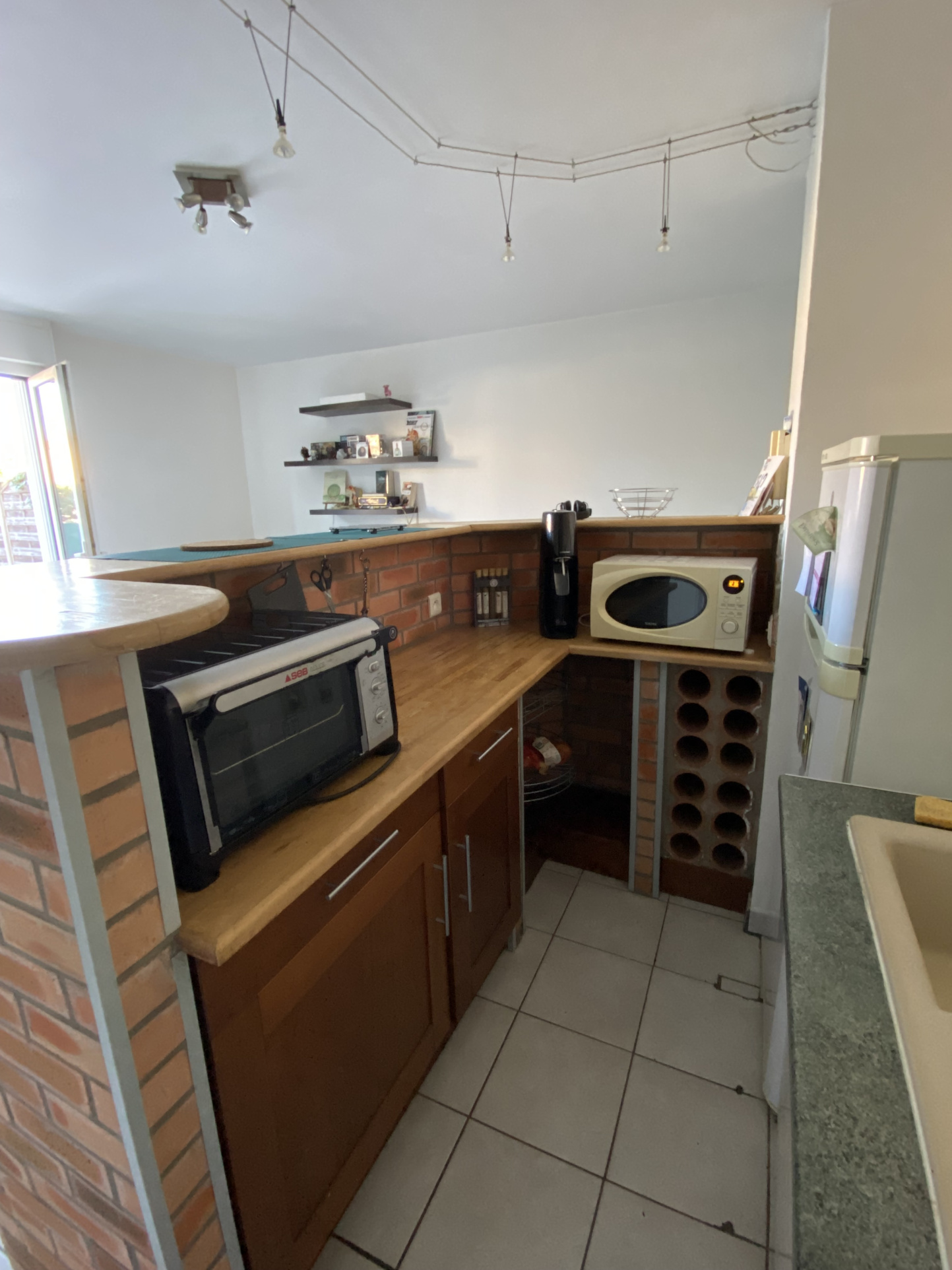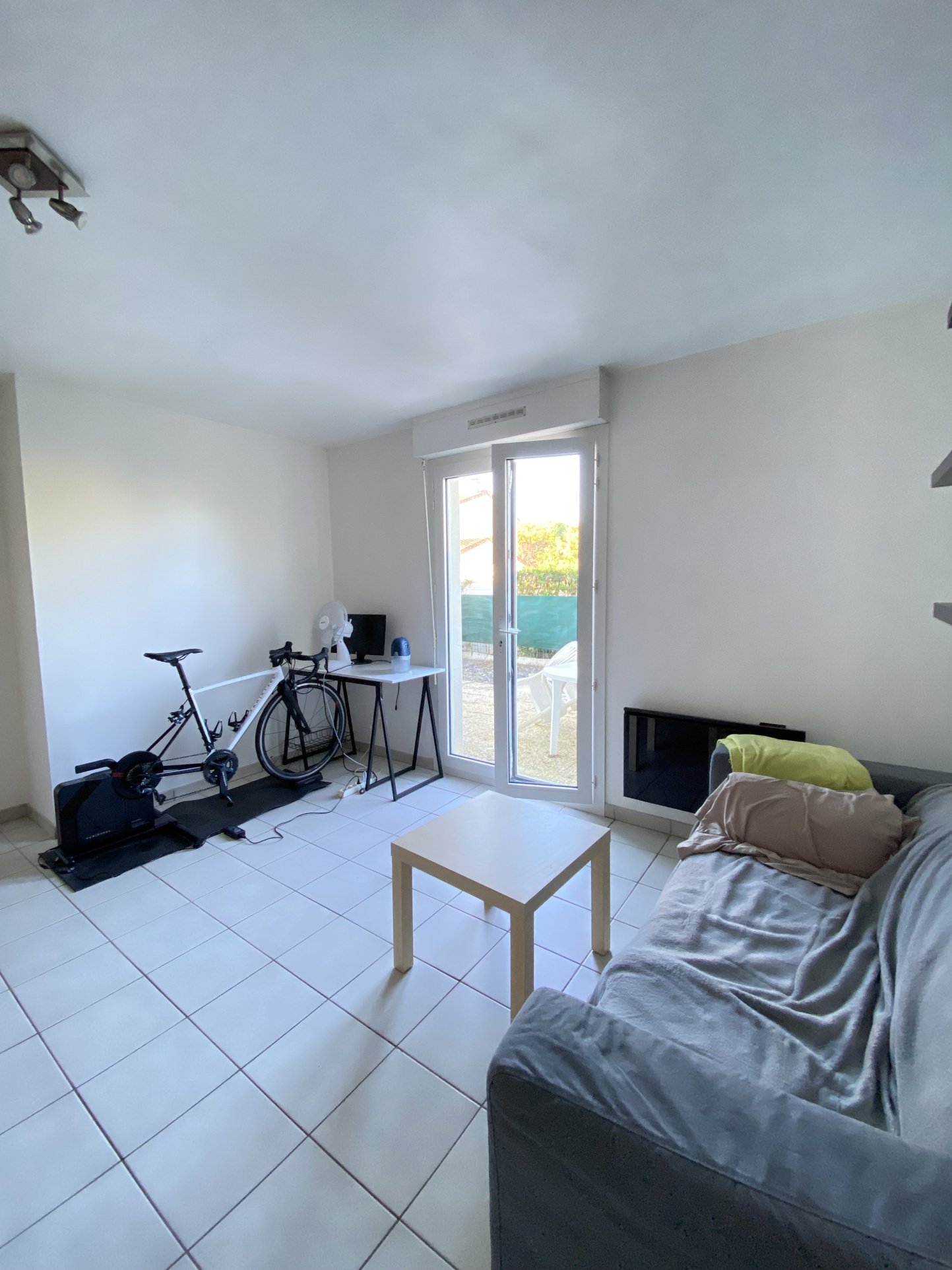 Jardinet avec des placards pour mettre un vélo.