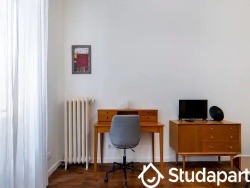Le studio se trouve au rez-de-chaussée d'une large cour d'un immeuble haussmannien récemment rénové. Le studio a une hauteur sous plafond de 3,2m et un accès indépendant depuis la cour. Un architecte/designer a travaillé sur son projet de rénovation avec l'objectif de créer un environnement de travail et de vie paisible et confortable dans un espace compact.