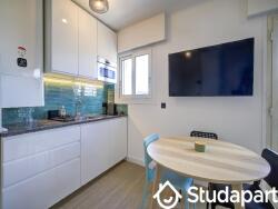 Joli Studio en plein c?ur de Juan les pins au calme tout confort, à 50 mètres des plages : vue panoramique collines, aperçu mer. En bas de l'immeuble : tous commerces et commodités, arrêt bus et gare à 2 minutes, Lignes 1 et 100 express pour le campus de Sophia Antipolis. Studio comprenant pièce principale avec canapé lit et TV HD, cuisine ouverte de 2024 avec frigo, plaques et micro-onde, dressing. Grande salle de bains avec machine à laver et rangements. Balcon avec table pour deux. Tout cela au calme et avec la bonne exposition. Garanties exigées. Loyer avec toutes charges comprises (Électricité, Eau, Chauffage, Charges de la résidence et Internet).