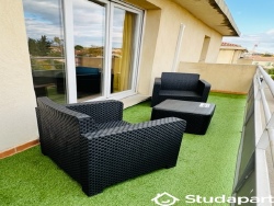Un superbe studio meublé très lumineux, spacieux et calme, loué avec une place de parking attitrée à l'intérieur de la résidence et proche de toutes commodités : arrêt de bus, gare de Miramas, commerces, centre-ville.