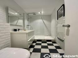 La salle de bain dispose d'une douche spacieuse ainsi que d'un WC.