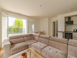 Dès l'entrée, vous serez séduit par un séjour baigné de lumière naturelle, offrant un accès direct à un balcon sans vis-à-vis, parfait pour profiter des beaux jours. La cuisine ouverte et équipée s'intègre harmonieusement à l'espace de vie, créant une atmosphère conviviale. L'appartement dispose également d'une entrée avec placard, d'une salle de bains moderne, de WC séparés et de deux chambres spacieuses, idéales pour accueillir une famille.