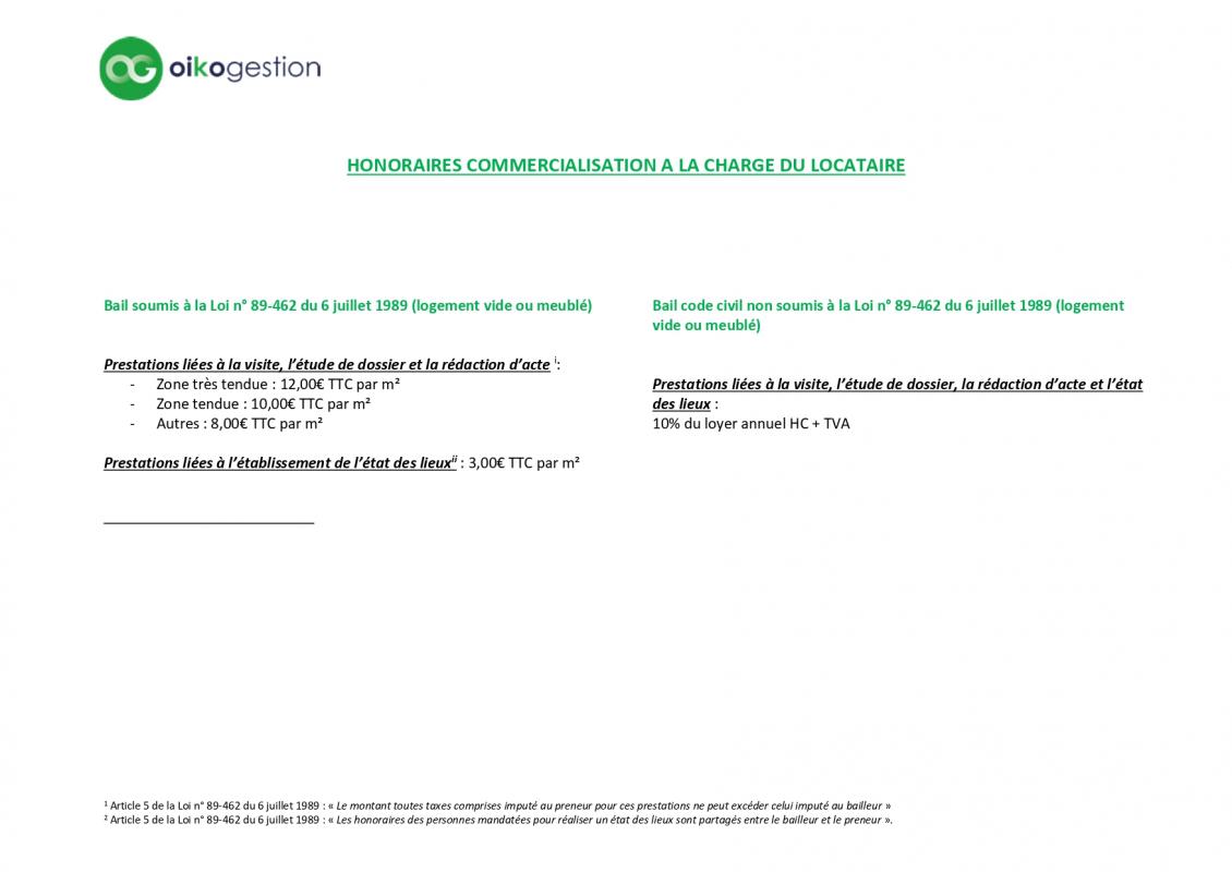 Dépôt de garantie : 2 mois de loyer hors charges (2 000 €)