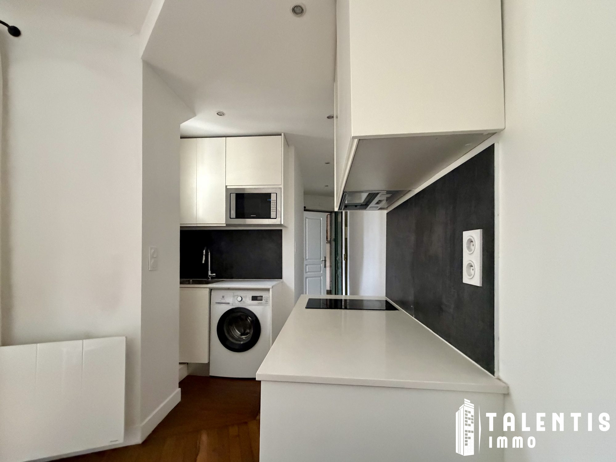 La cuisine : Elle est aménagée de manière moderne, avec des équipements essentiels comme une plaque de cuisson, un réfrigérateur, un micro-ondes, et des rangements pour les ustensiles. Un petit comptoir ou une table haute permet de prendre des repas rapides ou d'y étudier en toute tranquillité.