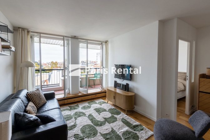- Un salon avec un canapé convertible et TV