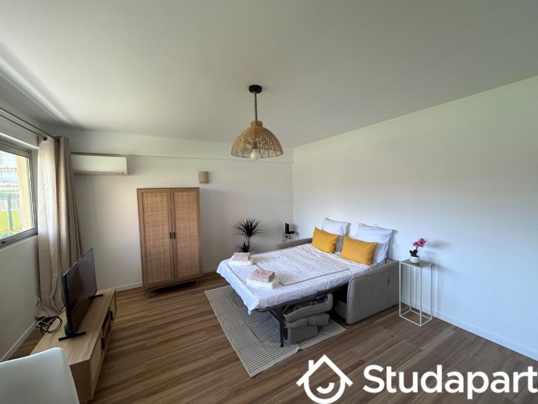 Location pour étudiants ou jeunes actifs d'un super T1 au dernier étage d'un petit immeuble en plein centre de Mandelieu mais au calme.