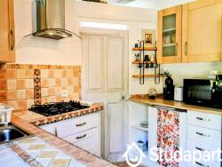 1 cuisine (Micro-ondes, Réfrigérateur avec compartiment congélation 2 tiroirs, un lave plaque de cuisson 4 feux gaz, lave vaisselle, machine à café, grille pain, ustensile de cuisine, vaisselles, poêle, casserole ?.),