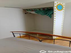 L'appartement est tout équipé, y compris lave linge (pas de lave vaisselle) canapé clic clac pour un couchage occasionnel, salle d'eau avec douche, w.c indépendant, coin chambre en mezzanine (suffisamment haute pour se tenir debout) avec lit en 140 cm et fenêtre de toit, nombreux rangements.