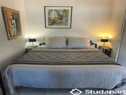 Situé dans un quartier recherché, dans une résidence de standing avec piscine et gardien, à proximité immédiate des commerces, des plages, de la gare SNCF et d'une salle de sports, il comprend une chambre équipée d'un lit double, un canapé lit dans le salon et une cabine équipée de deux lits simples superposés.