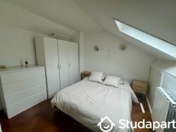 Une chambre avec son dressing et lit double, ainsi qu'un espace de rangement ou bureau.