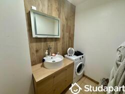 WC séparé, ainsi qu'une salle de bain avec sa vasque, machine à laver, douche.