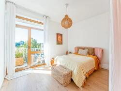 Dès l'entrée avec placard, une pièce de vie lumineuse, agrémentée d'une cheminée, s'ouvre sur un balcon offrant une vue dégagée sur la verdure.