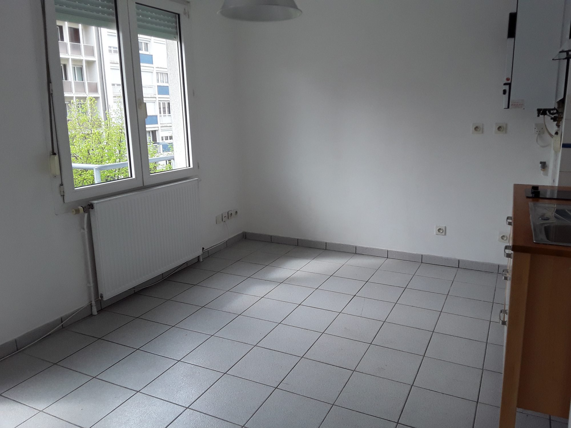 T2 lumineux sur 3 faces. Proximité des facultés, des commerces et des transports. Deux grandes pièces séparées par un couloir avec cuisine intégrée et salle de bain avec WC.
