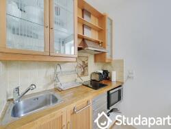 - Une cuisine ouverte et équipée : réfrigérateur, four, plaques à induction, micro-ondes, bouilloire, toaster, machine à laver, etc.