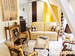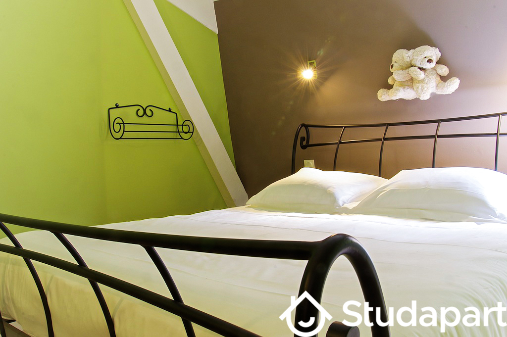 Ses deux chambres font de lui un appartement idéal pour une colocation. Elles comportent chacune un espace pour travailler (petit bureau), un placard et de nombreux rangements. Les lits mesurent tous les deux 140x190 (lits doubles). Le linge de maison est fourni (serviettes de bain, torchons, draps, couettes et oreillers).