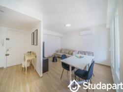 Disposition : 1 chambre, salon lumineux avec cuisine ouverte et accès balcon. Équipement : Cuisine équipée avec électroménager neuf (lave-linge, lave-vaisselle, four, plaque de cuisson) et climatisation réversible.