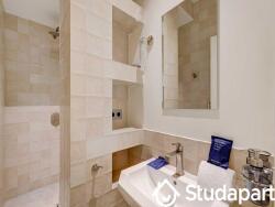 - Une salle d'eau avec douche, machine à laver et WC