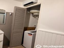 Une salle de bains de 4,5 m² avec baignoire et lave-linge.