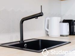 - Une cuisine ouverte, équipée et fonctionnelle : frigidaire, plaques de cuisson, machine à café, grille-pain, bouilloire, four, lave vaisselle, lave linge ...