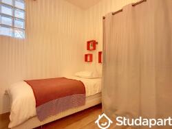 Chambre 2 (10 m²) : 2 lits simples (sans fenêtre), sans climatisation, ventilateur