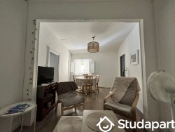 Deux chambres a coucher, avec un lit en 160 et un canapé lit en 140, bureaux, chaises et armoires, planche et fer a repasser, étendoir.
