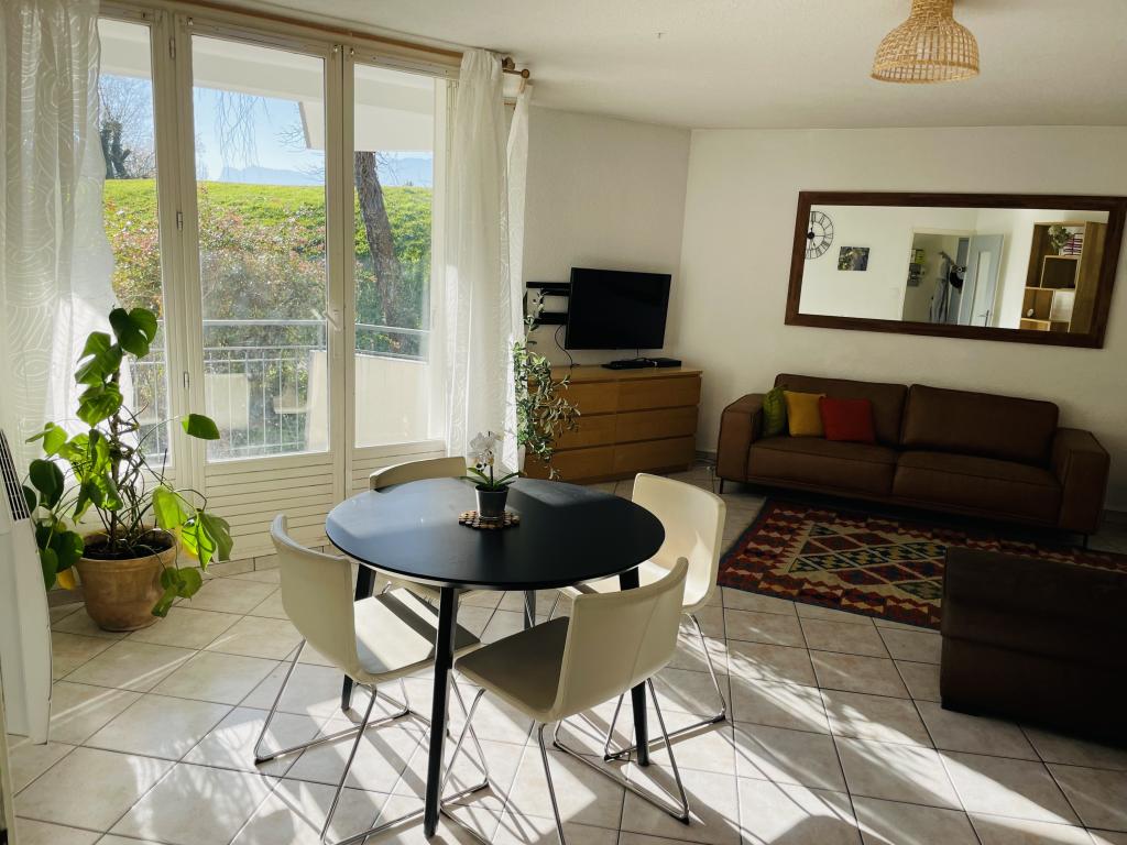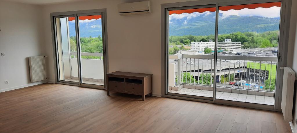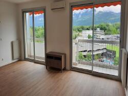 T3 de 66m² à Meylan avec terrasse (13m²), dans résidence de standing, comprenant un grand salon exposé plein sud avec vue panoramique sur montagnes, deux chambres (avec grand placard et dressing) et une cuisine équipée. Très lumineux et traversant. Vues dégagées sur trois massifs de montagnes (troisième étage) en bordure d'un grand parc. Très calme.
