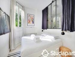 Ce très bel appartement refait à neuf et décoré avec goût est situé au rez-de-chaussée d'un immeuble typique parisien. A deux pas de la Seine, il est composé ainsi: