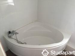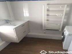 1 salle de bains: baignoire, lavabo, lave linge