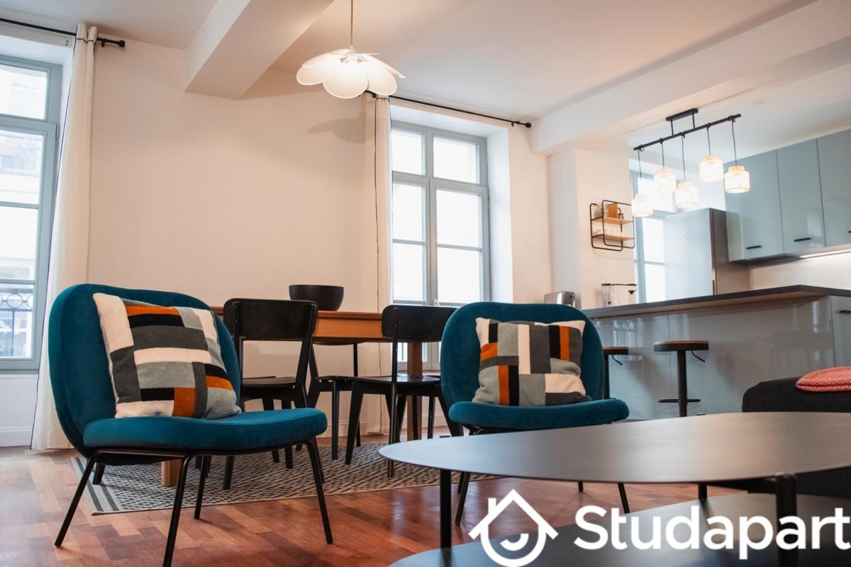 Location d'un appartement meublé 2 chambres à Bordeaux, d'une surface de 87m², au 5e étage d'une résidence avec ascenseur et place de parking couverte.