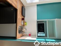 Récemment rénovée la chambre offre un couchage avec un lit de 90x200 cm, une cuisine avec frigidaire, plaque de cuisson, micro onde et rangements, un dressing, et une cabine de douche.