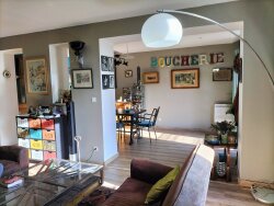 Appartement de standing - Pézenas coeur de ville En plein coeur de Pézenas, donnant sur une placette, spacieux et lumineux appartement en triplex, entièrement restauré avec beaucoup de goût. Un bel escalier nous mène au premier étage sur un grand salon-séjour de près de 50m2 et une cuisine de 10m2. On accède au deuxième étage par des escaliers faciles sur un palier de 10m2, comprenant des wc, une chambre de 16m2, un bureau de 10m2, une salle d'eau de 8,50m2 et une terrasse de 20m2. Au troisième étage, toujours un joli palier donnant sur deux chambres de 18,56m2 et 11,39m2 ainsi qu'une salle d'eau de 7,84m2. L'emplacement est idéal, la vue superbe et le très bel aménagement de cette maison lui donne beaucoup de charme ! C'est un bien unique sur Pézenas !
