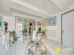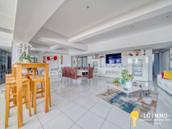 Superbe appartement en demi souplex très lumineux de 193 m2 offrant un cadre de vie rare, à la fois élégant et confortable. Situé en rez-de-chaussée d'un immeuble de 1958, il bénéficie d'un emplacement privilégié à environ 200 m du centre-ville et des commerces, tout en restant intimiste et chaleureux. Récemment rénové et présenté en excellent état, il séduit immédiatement par la qualité de ses prestations et ses volumes généreux, notamment une vaste pièce de vie de 78 m2. Dès l'entrée, l'ambiance est soignée et contemporaine. Une terrasse d'environ 18 m2 prolonge agréablement la vie quotidienne vers l'extérieur, idéale pour profiter de la douceur de Royan. Une buanderie vient parfaire l'aspect pratique de l'ensemble, permettant une organisation fluide au quotidien. La pièce de vie, baignée de lumière, s'ouvre sur une cuisine entièrement équipée, une salle à manger conviviale et un salon confortable, offrant un bel aperçu mer qui rappelle à chaque instant la proximité de l'océan. L'espace nuit se compose de quatre chambres qui apportent confort et intimité. La première dispose d'un dressing, d'une salle d'eau et de WC privatifs, offrant un véritable esprit de suite. La deuxième chambre bénéficie également de rangements, d'une salle d'eau et de WC. Une troisième chambre, avec placard, propose une salle de bain complétée par une douche et des WC, pour un confort optimal. La quatrième chambre est actuellement utilisée en bureau, avec placard, salle d'eau et WC, ce qui laisse une belle modularité selon les besoins, que ce soit en chambre supplémentaire, en espace de travail ou de loisir. Entièrement rénové, l'appartement ne nécessite aucun travaux et permet de s'installer sans délai dans un cadre abouti et haut de gamme. Parking à disposition à l'arrière de la résidence. A voir sans tarder pour plus d'informations contacter Martine Robin 07 54 10 23 93 ou par email : martine.robinlgimmo@gmail.com