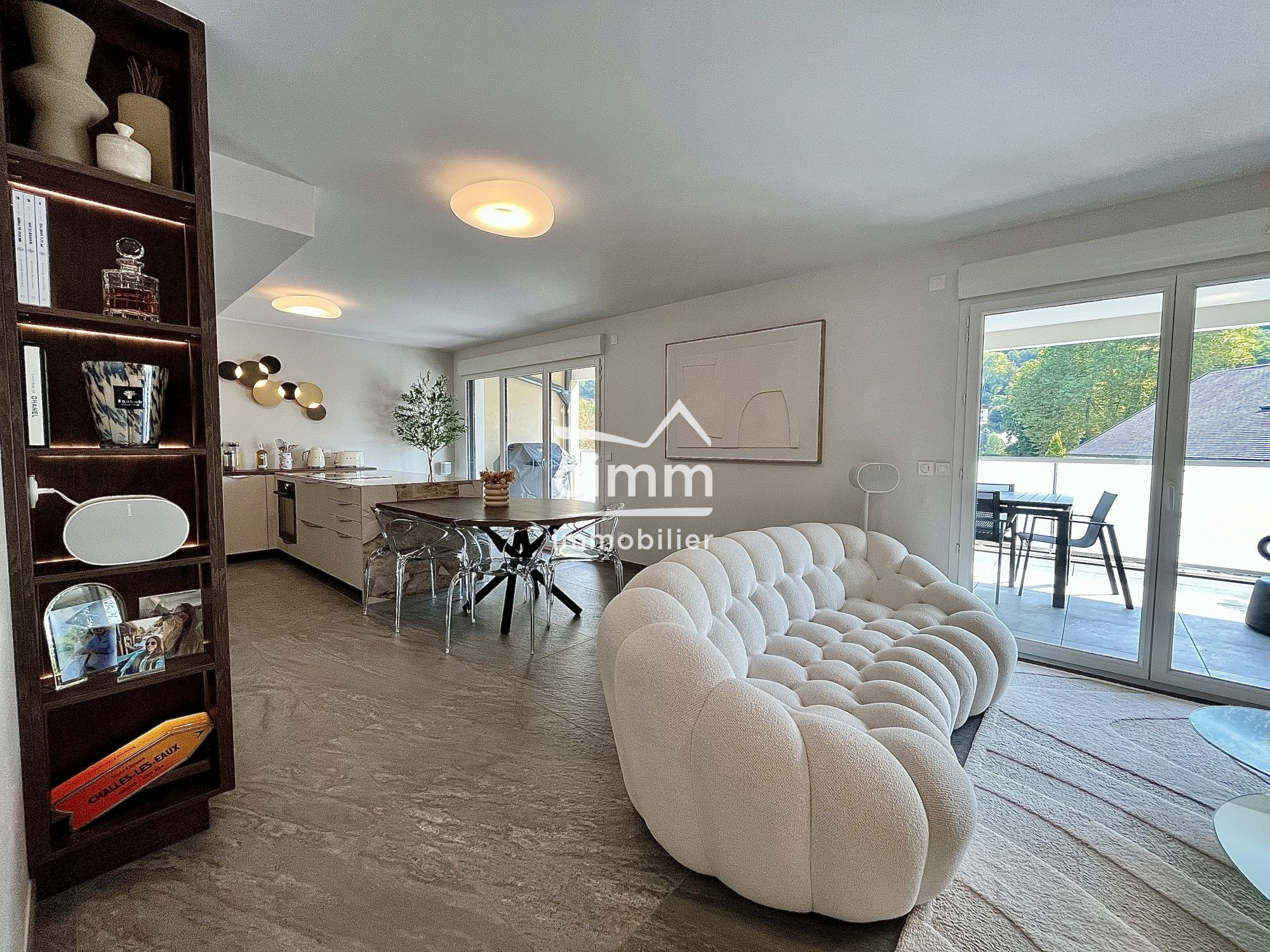 Duplex d'exception avec rooftop privatif et jacuzzi: À seulement 10 minutes de Chambéry, au coeur de la très prisée commune de Challes-les-Eaux, ce duplex contemporain, construit en 2020, offre une rare combinaison de prestations haut de gamme, volumes lumineux et aménagements uniques alliant élégance et raffinement. Chaque espace de ce bien a été entièrement conçu et optimisé par un architecte. Au rez-de-chaussée vous disposerez d'un hall d'entrée distribuant un dressing, un WC indépendants, une salle de fitness avec accès à un balcon, une chambre ainsi que une salle d'eau complètent cet espace.L'espace de vie s'organise autour d'une cuisine contemporaine ouverte, élégamment intégrée aux placards et entièrement équipée. Elle se prolonge par une salle à manger et un vaste séjour lumineux, ouvert sur balcon. Un bureau intégré sous l'escalier témoigne d'une optimisation remarquable des volumes. À l'étage, la mezzanine s'impose comme un espace de travail ou de détente idéal. Deux chambres supplémentaires, une salle de bains et un WC indépendant complètent ce niveau. Pour compléter ce bien, vous ne pourrez qu'être séduit par sa tropézienne privative pensée comme un espace de réception exclusif. Vous y découvrirez en extérieur un jacuzzi et en interieur une cuisine d'été équipée ainsi qu'une douche, offrant une atmosphère unique, propice à la détente et aux moments de convivialité. Concernant vos véhicule et les espaces de rangements annexes, vous disposez d'un double garage spacieux et fermé situé au sous-sol avec accès par ascenseur. Informations complémentaires: Chauffage individuel au gaz et climatisation réversible, fibre optique, vidéophone, aménagements intérieurs conçus par architecte et inclus dans la vente. Copropriété récente et intimiste (46 lots dont 15 logements), charges mensuelles : environ 200 .
