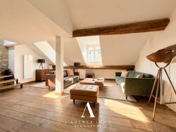 Aménagement intérieur :Ce bien se distingue par une distribution sur plusieurs niveaux, pensée pour offrir à la fois confort et fonctionnalité. Dès l'entrée, vous découvrez une cuisine ouverte sur une agréable salle à manger, sublimée par un superbe mur en pierre, témoin d'une rénovation réussie ayant su préserver le cachet de l'ancien. Les poutres apparentes présentes dans l'appartement renforcent cette atmosphère chaleureuse et authentique. En empruntant un premier escalier, vous accédez à un niveau dédié à la vie quotidienne, où se trouve un vaste salon baigné de lumière, offrant une vue exceptionnelle sur la cathédrale. Sur ce même étage, deux suites parentales viennent compléter l'ensemble : l'une dispose de sa salle de bains avec WC, l'autre d'une salle d'eau privative. Une salle d'eau indépendante ainsi qu'un WC séparé viennent parfaire le confort de cet étage. Un second escalier mène au dernier niveau, où vous découvrirez deux chambres supplémentaires. Un autre escalier indépendant dessert un espace actuellement aménagé en bureau, offrant un véritable potentiel d'évolution : il est en effet tout à fait possible d'ouvrir cet espace sur l'une des chambres afin de créer une grande suite avec dressing. Cette configuration apporte une réelle flexibilité d'aménagement selon vos besoins. L'ensemble de l'appartement bénéficie d'un calme absolu, un atout particulièrement rare et précieux en plein centre-ville.