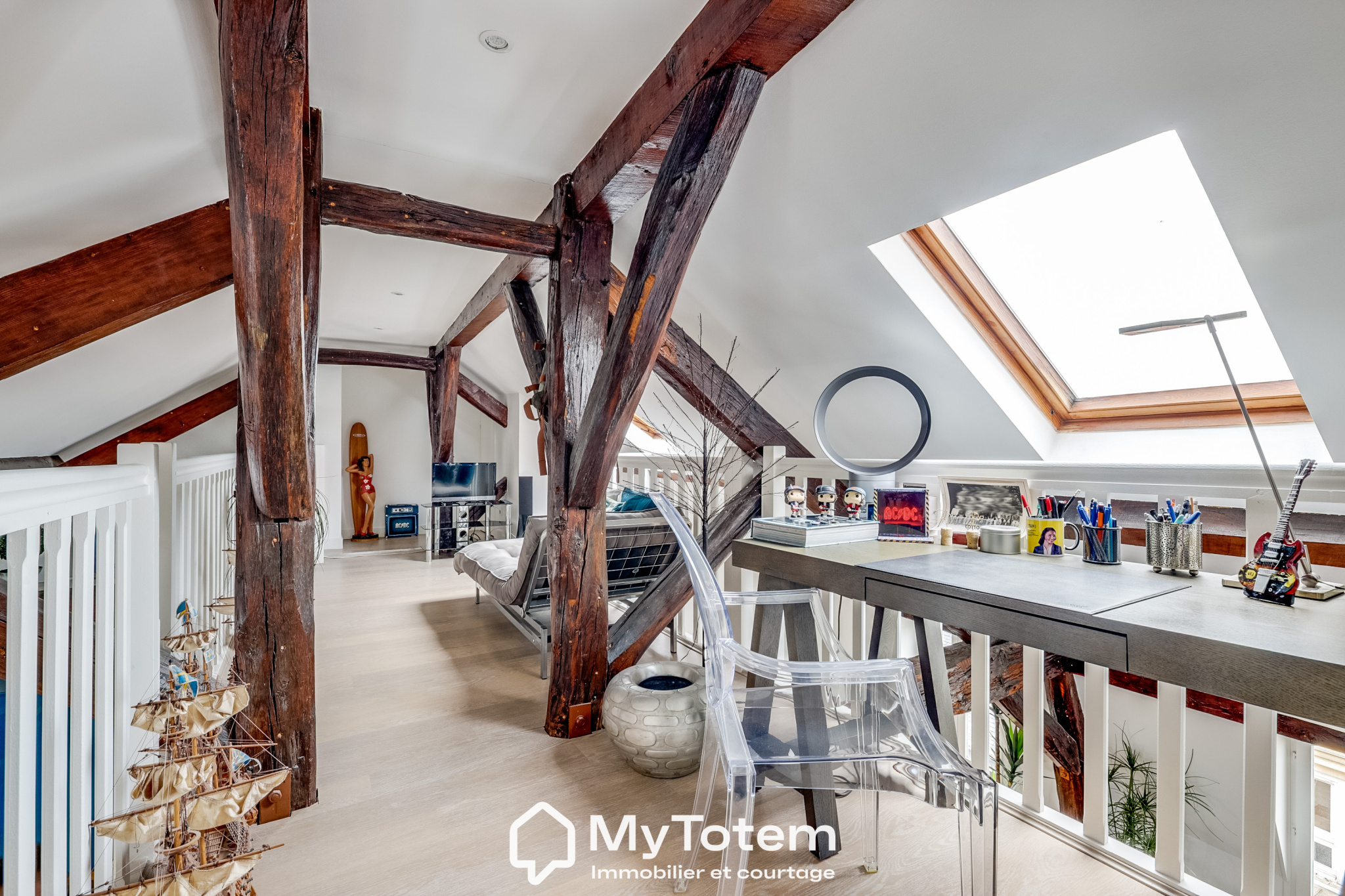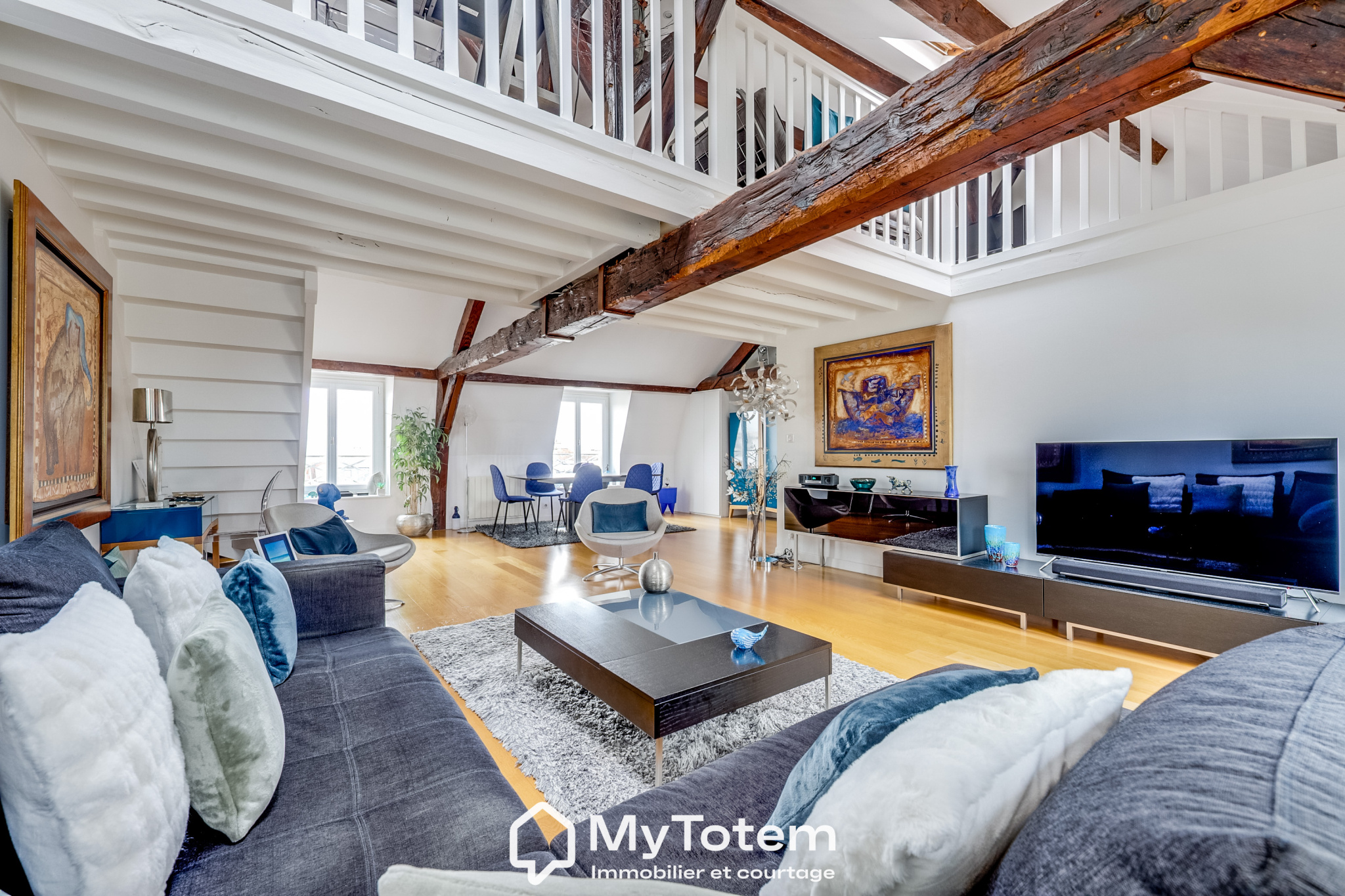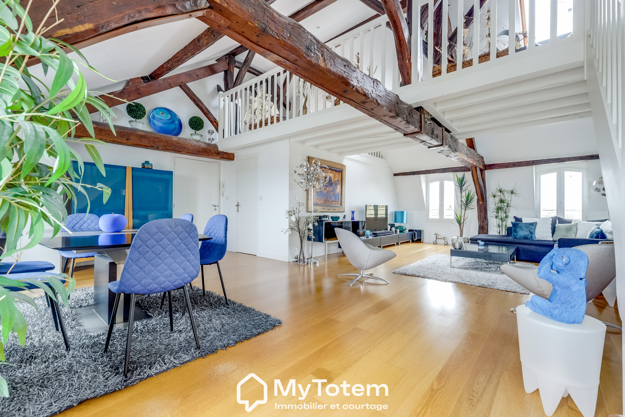 Offrez-vous un cadre de vie rare dans ce magnifique appartement de 210 m², situé à deux pas du centre village de Louveciennes, au calme, entouré de verdure, et à proximité immédiate des commerces, écoles, gare, parc et forêt. Ce duplex aux prestations haut de gamme, situé au dernier étage avec ascenseur d'une résidence sécurisée avec gardien, allie élégance, confort et volumes généreux. Une entrée spacieuse et fonctionnelle distribue les différents espaces. La pièce de vie se compose d'un salon avec cheminée et d'une salle à manger, ouverts par de larges baies vitrées sur deux terrasses, sans vis-à-vis, avec vue sur la verdure. La cuisine contemporaine, entièrement aménagée et équipée, donne un accès pratique à la salle à manger. Un bureau raffiné avec boiseries offre un espace de travail idéal, calme et lumineux. Ce niveau comprend également une belle chambre, une buanderie aménagée, une salle de bains, une salle d'eau et de nombreux rangements. À l'étage, une vaste mezzanine surplombant le séjour peut faire office de bureau, salle de jeux ou être cloisonnée pour créer une chambre supplémentaire. Deux chambres ouvrent sur une superbe terrasse exposée plein sud. Une salle d'eau et des rangements complètent ce niveau. Une cave et une place de stationnement sont incluses. Une seconde place est disponible en option. Un bien d'exception par ses volumes, ses trois terrasses, la qualité de ses prestations et son emplacement privilégié. L'alternative idéale à une maison, sans compromis sur l'espace ni le confort.