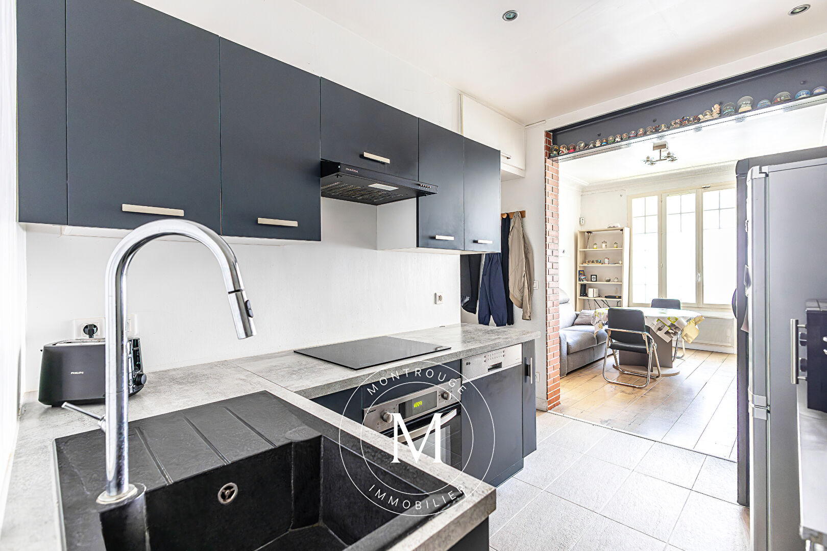 EXCLUSIVITE de votre agence MONTROUGE IMMOBILIER, Rue Molière à 2 minutes du Métro Ligne 4 et aux portes de tous les commerces de l'Avenue de la République de MONTROUGE, dans une petite copropriété à faible charges, venez découvrir cette perle rare. Un appartement type LOFT en rez de chaussée de 32.15m² Loi CARREZ + mezzanine, comprenant un espace cuisine ultra équipée, une partie séjour/salon avec 3.66m de hauteur sous plafond, un espace nuit (non compris dans la surface loi carrez), une salle de bains avec wc et placards. Entièrement rénové avec DPE D, chauffage individuel, ce bien est unique sur la commune. (4.81 % honoraires TTC à la charge de l'acquéreur.) Copropriété de 31 lots - dont 26 lots habitation. (Pas de procédure en cours). Charges annuelles : 1050 euros.