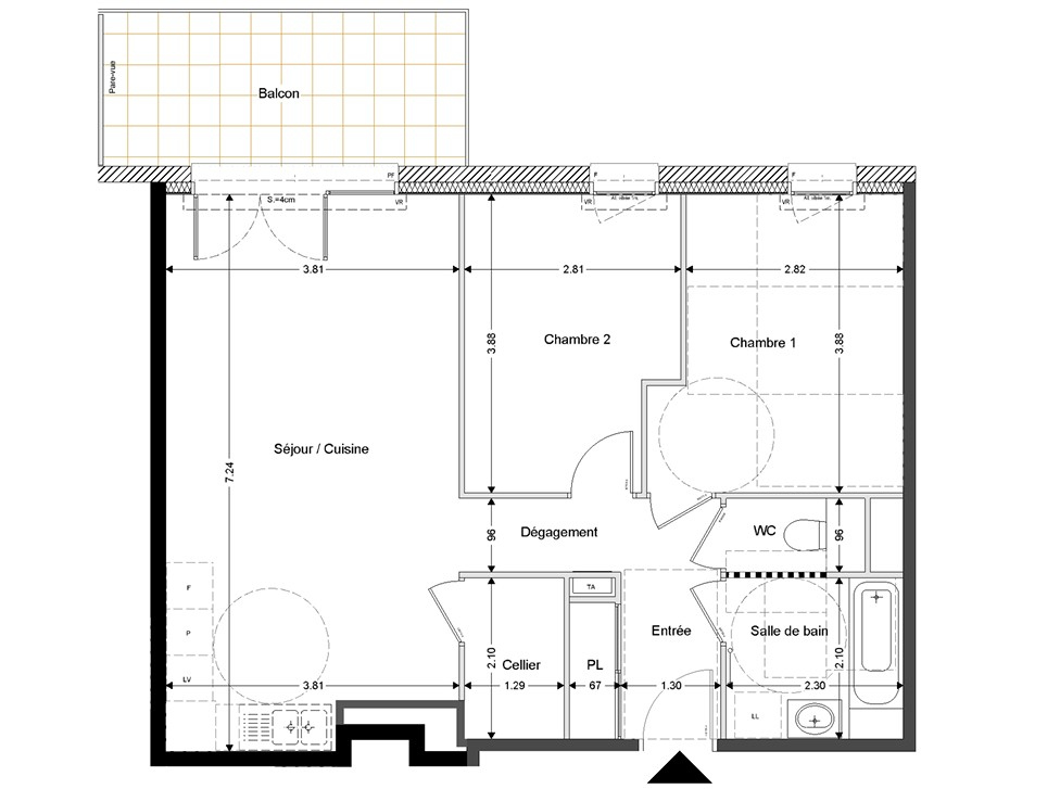 Une chambre supplémentaire de 11 m2 Un espace bureau en mezzanine de 9 m2 ouvert sur le séjour, avec possibilité de le transformer en chambre Seconde salle de bains avec baignoire et WC