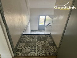 Appartement rénové de type 4 au deuxième et dernier étage d'un petit immeuble ancien situé au centre du bourg. 70 m2 habitables et 94 m2 utiles, 3 chambres, cuisine ouverte équipée sur pièce à vivre avec plafonds rampants, 2 salles d'eau avec toilettes, palier privatif. Emplacement idéal , commerces à pied. Exposition Sud ouest.